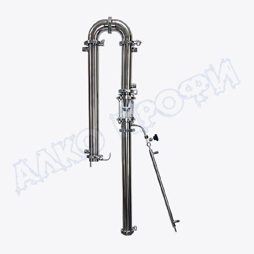 С помощью диоптра с узлом отбора очень удобно устанавливать флегмовое число, контролировать “предзахлебные” состояния, не допуская “захлеб” колонны, и визуально контролировать весь процесс.