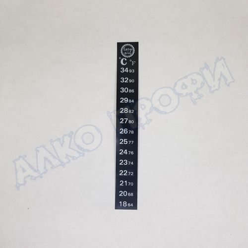 Термометр самоклеящийся, приклеивается практически к любому материалу, будь то пластик или нержавеющая сталь. Имеет шкалу температуры от 18°С до 34°С. Приклеивать нужно строго в вертикальном положение для корректного отображения температуры.